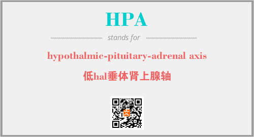 上述内容是“hypothalmic-pituitary-adrenal axis”作为“HPA”的缩写,解释为“低hal垂体肾上腺轴”时的信息,以及英文缩略词HPA所代表的英文单词,其对应的中文拼音、详细解释以及在英文中的流行度和相关分类、应用领域及应用示例等。