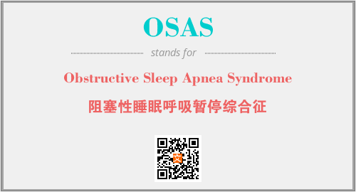 上述内容是“Obstructive Sleep Apnea Syndrome”作为“OSAS”的缩写,解释为“阻塞性睡眠呼吸暂停综合征”时的信息,以及英文缩略词OSAS所代表的英文单词,其对应的中文拼音、详细解释以及在英文中的流行度和相关分类、应用领域及应用示例等。