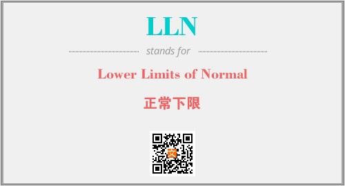上述内容是“Lower Limits of Normal”作为“LLN”的缩写,解释为“正常下限”时的信息,以及英文缩略词LLN所代表的英文单词,其对应的中文拼音、详细解释以及在英文中的流行度和相关分类、应用领域及应用示例等。