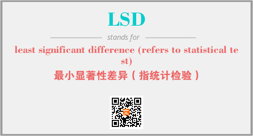 英文缩略词“LSD”经常作为“least significant difference (refers to statistical test)”的英文缩写来使用,中文表示:“最小显著性差异(指统计检验)”。本文将详细介绍英文缩写词LSD所代表英文单词,其对应的中文拼音、详细解释以及在英语中的流行度。此外,还有关于缩略词LSD的分类、应用领域及相关应用示例等。