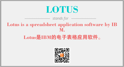 上述内容是“Lotus is a spreadsheet application software by IBM.”作为“LOTUS”的缩写,解释为“Lotus是IBM的电子表格应用软件。”时的信息,以及英文缩略词LOTUS所代表的英文单词,其对应的中文拼音、详细解释以及在英文中的流行度和相关分类、应用领域及应用示例等。