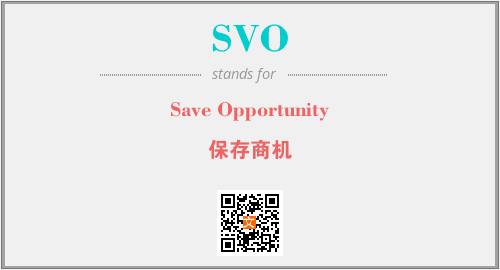 上述内容是“Save Opportunity”作为“SVO”的缩写,解释为“保存商机”时的信息,以及英文缩略词SVO所代表的英文单词,其对应的中文拼音、详细解释以及在英文中的流行度和相关分类、应用领域及应用示例等。