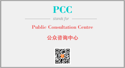 英文缩略词“PCC”经常作为“Public Consultation Centre”的英文缩写来使用,中文表示:“公众咨询中心”。本文将详细介绍英文缩写词PCC所代表英文单词,其对应的中文拼音、详细解释以及在英语中的流行度。此外,还有关于缩略词PCC的分类、应用领域及相关应用示例等。