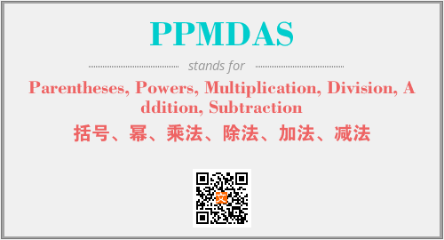 英文缩略词“PPMDAS”经常作为“Parentheses, Powers, Multiplication, Division, Addition, Subtraction”的英文缩写来使用,中文表示:“括号、幂、乘法、除法、加法、减法”。本文将详细介绍英文缩写词PPMDAS所代表英文单词,其对应的中文拼音、详细解释以及在英语中的流行度。此外,还有关于缩略词PPMDAS的分类、应用领域及相关应用示例等。