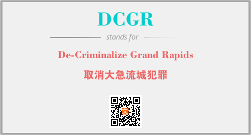 上述内容是“De-Criminalize Grand Rapids”作为“DCGR”的缩写,解释为“取消大急流城犯罪”时的信息,以及英文缩略词DCGR所代表的英文单词,其对应的中文拼音、详细解释以及在英文中的流行度和相关分类、应用领域及应用示例等。