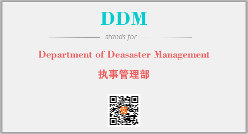 英文缩略词“DDM”经常作为“Department of Deasaster Management”的英文缩写来使用,中文表示:“执事管理部”。本文将详细介绍英文缩写词DDM所代表英文单词,其对应的中文拼音、详细解释以及在英语中的流行度。此外,还有关于缩略词DDM的分类、应用领域及相关应用示例等。