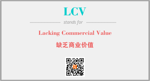 以上为Lacking Commercial Value英文缩略词LCV的中文解释,以及该英文缩写在英语的流行度、分类和应用领域方面的信息。