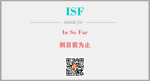 上述内容是“In So Far”作为“ISF”的缩写,解释为“到目前为止”时的信息,以及英文缩略词ISF所代表的英文单词,其对应的中文拼音、详细解释以及在英文中的流行度和相关分类、应用领域及应用示例等。