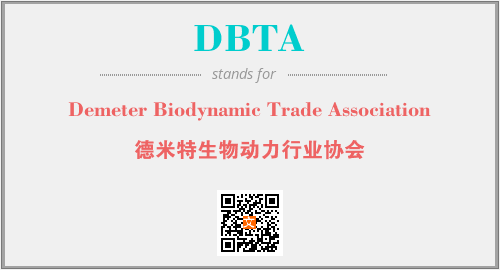 上述内容是“Demeter Biodynamic Trade Association”作为“DBTA”的缩写,解释为“德米特生物动力行业协会”时的信息,以及英文缩略词DBTA所代表的英文单词,其对应的中文拼音、详细解释以及在英文中的流行度和相关分类、应用领域及应用示例等。