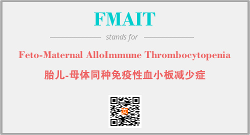 英文缩略词“FMAIT”经常作为“Feto-Maternal AlloImmune Thrombocytopenia”的英文缩写来使用,中文表示:“胎儿-母体同种免疫性血小板减少症”。本文将详细介绍英文缩写词FMAIT所代表英文单词,其对应的中文拼音、详细解释以及在英语中的流行度。此外,还有关于缩略词FMAIT的分类、应用领域及相关应用示例等。