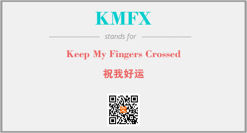 英文缩略词“KMFX”经常作为“Keep My Fingers Crossed”的英文缩写来使用,中文表示:“祝我好运”。本文将详细介绍英文缩写词KMFX所代表英文单词,其对应的中文拼音、详细解释以及在英语中的流行度。此外,还有关于缩略词KMFX的分类、应用领域及相关应用示例等。
