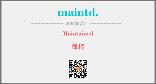 上述内容是“Maintained”作为“maintd.”的缩写,解释为“保持”时的信息,以及英文缩略词maintd.所代表的英文单词,其对应的中文拼音、详细解释以及在英文中的流行度和相关分类、应用领域及应用示例等。
