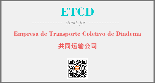 以上为Empresa de Transporte Coletivo de Diadema英文缩略词ETCD的中文解释,以及该英文缩写在英语的流行度、分类和应用领域方面的信息。