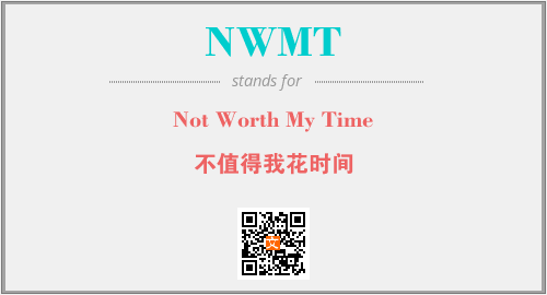 上述内容是“Not Worth My Time”作为“NWMT”的缩写,解释为“不值得我花时间”时的信息,以及英文缩略词NWMT所代表的英文单词,其对应的中文拼音、详细解释以及在英文中的流行度和相关分类、应用领域及应用示例等。