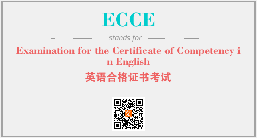 英文缩略词“ECCE”经常作为“Examination for the Certificate of Competency in English”的英文缩写来使用,中文表示:“英语合格证书考试”。本文将详细介绍英文缩写词ECCE所代表英文单词,其对应的中文拼音、详细解释以及在英语中的流行度。此外,还有关于缩略词ECCE的分类、应用领域及相关应用示例等。