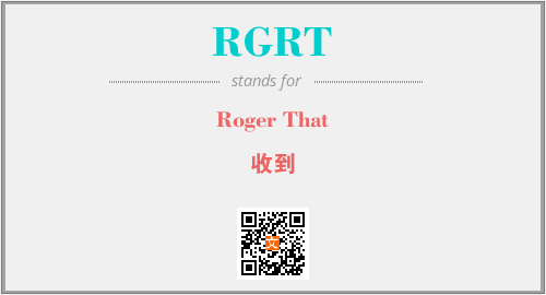 上述内容是“Roger That”作为“RGRT”的缩写,解释为“收到”时的信息,以及英文缩略词RGRT所代表的英文单词,其对应的中文拼音、详细解释以及在英文中的流行度和相关分类、应用领域及应用示例等。
