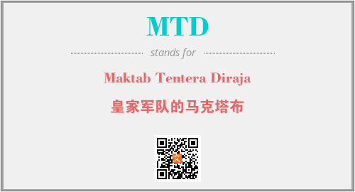 英文缩略词“MTD”经常作为“Maktab Tentera Diraja”的英文缩写来使用,中文表示:“皇家军队的马克塔布”。本文将详细介绍英文缩写词MTD所代表英文单词,其对应的中文拼音、详细解释以及在英语中的流行度。此外,还有关于缩略词MTD的分类、应用领域及相关应用示例等。