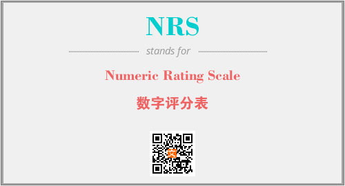 上述内容是“Numeric Rating Scale”作为“NRS”的缩写,解释为“数字评分表”时的信息,以及英文缩略词NRS所代表的英文单词,其对应的中文拼音、详细解释以及在英文中的流行度和相关分类、应用领域及应用示例等。