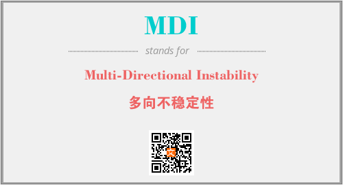 上述内容是“Multi-Directional Instability”作为“MDI”的缩写,解释为“多向不稳定性”时的信息,以及英文缩略词MDI所代表的英文单词,其对应的中文拼音、详细解释以及在英文中的流行度和相关分类、应用领域及应用示例等。
