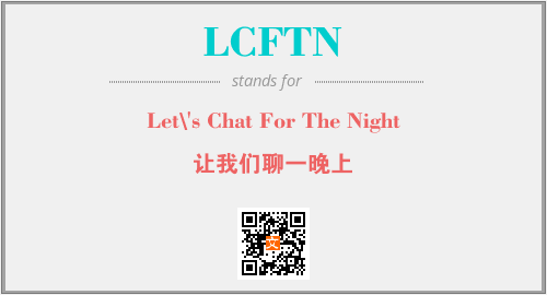 以上为Let\'s Chat For The Night英文缩略词LCFTN的中文解释,以及该英文缩写在英语的流行度、分类和应用领域方面的信息。