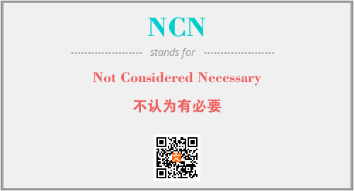 以上为Not Considered Necessary英文缩略词NCN的中文解释,以及该英文缩写在英语的流行度、分类和应用领域方面的信息。