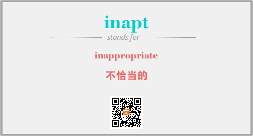 上述内容是“inappropriate”作为“inapt”的缩写,解释为“不恰当的”时的信息,以及英文缩略词inapt所代表的英文单词,其对应的中文拼音、详细解释以及在英文中的流行度和相关分类、应用领域及应用示例等。
