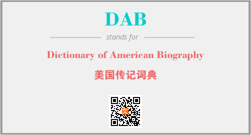 上述内容是“Dictionary of American Biography”作为“DAB”的缩写,解释为“美国传记词典”时的信息,以及英文缩略词DAB所代表的英文单词,其对应的中文拼音、详细解释以及在英文中的流行度和相关分类、应用领域及应用示例等。