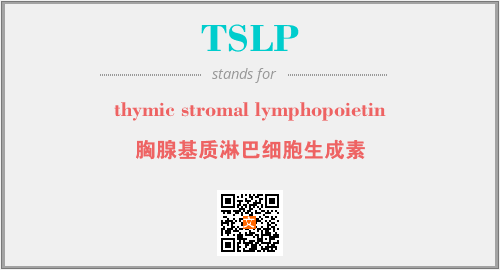 上述内容是“thymic stromal lymphopoietin”作为“TSLP”的缩写,解释为“胸腺基质淋巴细胞生成素”时的信息,以及英文缩略词TSLP所代表的英文单词,其对应的中文拼音、详细解释以及在英文中的流行度和相关分类、应用领域及应用示例等。