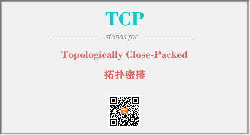 上述内容是“Topologically Close-Packed”作为“TCP”的缩写,解释为“拓扑密排”时的信息,以及英文缩略词TCP所代表的英文单词,其对应的中文拼音、详细解释以及在英文中的流行度和相关分类、应用领域及应用示例等。