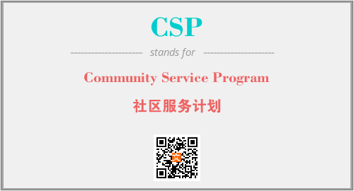 上述内容是“Community Service Program”作为“CSP”的缩写,解释为“社区服务计划”时的信息,以及英文缩略词CSP所代表的英文单词,其对应的中文拼音、详细解释以及在英文中的流行度和相关分类、应用领域及应用示例等。