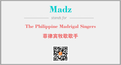 英文缩略词“Madz”经常作为“The Philippine Madrigal Singers”的英文缩写来使用,中文表示:“菲律宾牧歌歌手”。本文将详细介绍英文缩写词Madz所代表英文单词,其对应的中文拼音、详细解释以及在英语中的流行度。此外,还有关于缩略词Madz的分类、应用领域及相关应用示例等。