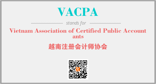 英文缩略词“VACPA”经常作为“Vietnam Association of Certified Public Accountants”的英文缩写来使用,中文表示:“越南注册会计师协会”。本文将详细介绍英文缩写词VACPA所代表英文单词,其对应的中文拼音、详细解释以及在英语中的流行度。此外,还有关于缩略词VACPA的分类、应用领域及相关应用示例等。