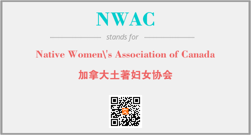 上述内容是“Native Women\'s Association of Canada”作为“NWAC”的缩写,解释为“加拿大土著妇女协会”时的信息,以及英文缩略词NWAC所代表的英文单词,其对应的中文拼音、详细解释以及在英文中的流行度和相关分类、应用领域及应用示例等。
