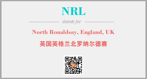 上述内容是“North Ronaldsay, England, UK”作为“NRL”的缩写,解释为“英国英格兰北罗纳尔德赛”时的信息,以及英文缩略词NRL所代表的英文单词,其对应的中文拼音、详细解释以及在英文中的流行度和相关分类、应用领域及应用示例等。
