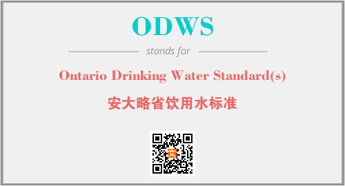 上述内容是“Ontario Drinking Water Standard(s)”作为“ODWS”的缩写,解释为“安大略省饮用水标准”时的信息,以及英文缩略词ODWS所代表的英文单词,其对应的中文拼音、详细解释以及在英文中的流行度和相关分类、应用领域及应用示例等。