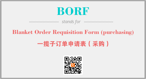 英文缩略词“BORF”经常作为“Blanket Order Requisition Form (purchasing)”的英文缩写来使用,中文表示:“一揽子订单申请表(采购)”。本文将详细介绍英文缩写词BORF所代表英文单词,其对应的中文拼音、详细解释以及在英语中的流行度。此外,还有关于缩略词BORF的分类、应用领域及相关应用示例等。