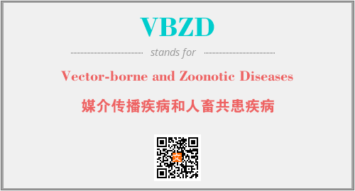 上述内容是“Vector-borne and Zoonotic Diseases”作为“VBZD”的缩写,解释为“媒介传播疾病和人畜共患疾病”时的信息,以及英文缩略词VBZD所代表的英文单词,其对应的中文拼音、详细解释以及在英文中的流行度和相关分类、应用领域及应用示例等。