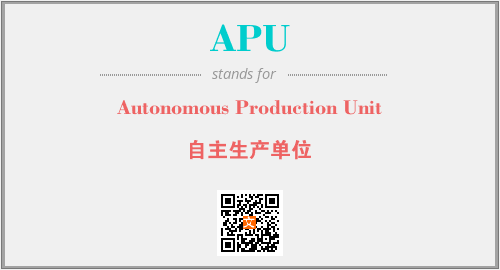 英文缩略词“APU”经常作为“Autonomous Production Unit”的英文缩写来使用,中文表示:“自主生产单位”。本文将详细介绍英文缩写词APU所代表英文单词,其对应的中文拼音、详细解释以及在英语中的流行度。此外,还有关于缩略词APU的分类、应用领域及相关应用示例等。