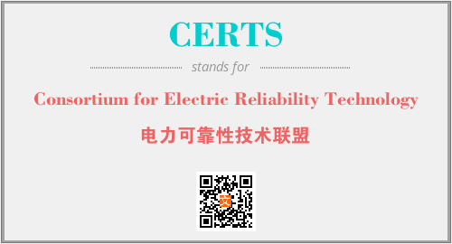 上述内容是“Consortium for Electric Reliability Technology”作为“CERTS”的缩写,解释为“电力可靠性技术联盟”时的信息,以及英文缩略词CERTS所代表的英文单词,其对应的中文拼音、详细解释以及在英文中的流行度和相关分类、应用领域及应用示例等。