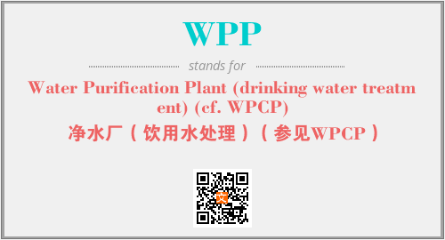 英文缩略词“WPP”经常作为“Water Purification Plant (drinking water treatment) (cf. WPCP)”的英文缩写来使用,中文表示:“净水厂(饮用水处理)(参见WPCP)”。本文将详细介绍英文缩写词WPP所代表英文单词,其对应的中文拼音、详细解释以及在英语中的流行度。此外,还有关于缩略词WPP的分类、应用领域及相关应用示例等。