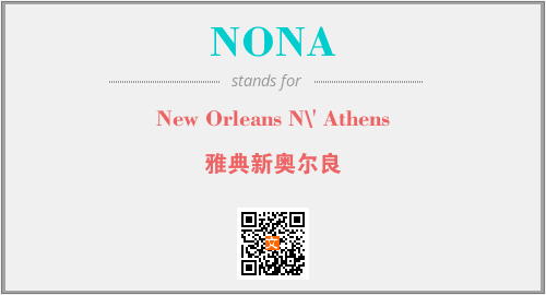 上述内容是“New Orleans N\' Athens”作为“NONA”的缩写,解释为“雅典新奥尔良”时的信息,以及英文缩略词NONA所代表的英文单词,其对应的中文拼音、详细解释以及在英文中的流行度和相关分类、应用领域及应用示例等。