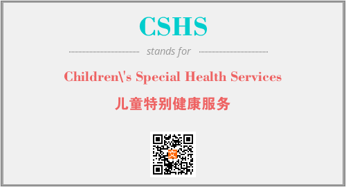 英文缩略词“CSHS”经常作为“Children\'s Special Health Services”的英文缩写来使用,中文表示:“儿童特别健康服务”。本文将详细介绍英文缩写词CSHS所代表英文单词,其对应的中文拼音、详细解释以及在英语中的流行度。此外,还有关于缩略词CSHS的分类、应用领域及相关应用示例等。