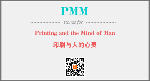 英文缩略词“PMM”经常作为“Printing and the Mind of Man”的英文缩写来使用,中文表示:“印刷与人的心灵”。本文将详细介绍英文缩写词PMM所代表英文单词,其对应的中文拼音、详细解释以及在英语中的流行度。此外,还有关于缩略词PMM的分类、应用领域及相关应用示例等。