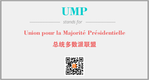 以上为Union pour la Majorité Présidentielle英文缩略词UMP的中文解释,以及该英文缩写在英语的流行度、分类和应用领域方面的信息。