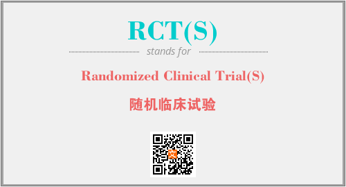 上述内容是“Randomized Clinical Trial(S)”作为“RCT(S)”的缩写,解释为“随机临床试验”时的信息,以及英文缩略词RCT(S)所代表的英文单词,其对应的中文拼音、详细解释以及在英文中的流行度和相关分类、应用领域及应用示例等。