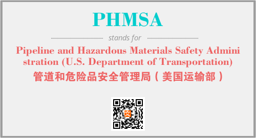 以上为Pipeline and Hazardous Materials Safety Administration (U.S. Department of Transportation)英文缩略词PHMSA的中文解释,以及该英文缩写在英语的流行度、分类和应用领域方面的信息。