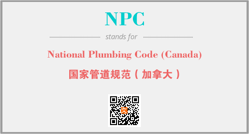 英文缩略词“NPC”经常作为“National Plumbing Code (Canada)”的英文缩写来使用,中文表示:“国家管道规范(加拿大)”。本文将详细介绍英文缩写词NPC所代表英文单词,其对应的中文拼音、详细解释以及在英语中的流行度。此外,还有关于缩略词NPC的分类、应用领域及相关应用示例等。