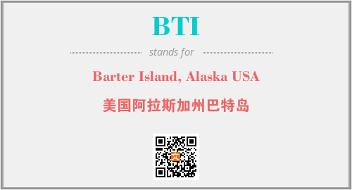 英文缩略词“BTI”经常作为“Barter Island, Alaska USA”的英文缩写来使用,中文表示:“美国阿拉斯加州巴特岛”。本文将详细介绍英文缩写词BTI所代表英文单词,其对应的中文拼音、详细解释以及在英语中的流行度。此外,还有关于缩略词BTI的分类、应用领域及相关应用示例等。