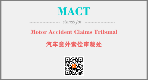 上述内容是“Motor Accident Claims Tribunal”作为“MACT”的缩写,解释为“汽车意外索偿审裁处”时的信息,以及英文缩略词MACT所代表的英文单词,其对应的中文拼音、详细解释以及在英文中的流行度和相关分类、应用领域及应用示例等。