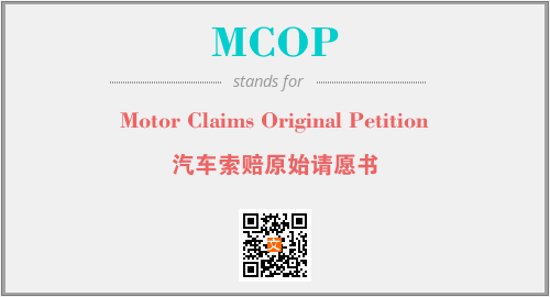 以上为Motor Claims Original Petition英文缩略词MCOP的中文解释,以及该英文缩写在英语的流行度、分类和应用领域方面的信息。